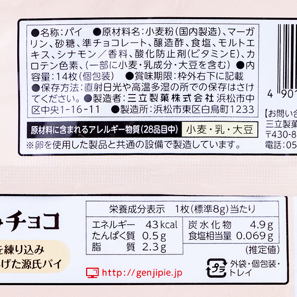 【商品サイズ】 約24×12×6cm 【主な仕様】 14枚入 【商品詳細】 源氏パイにチョコレートを練り込みました!甘くておいしい♪